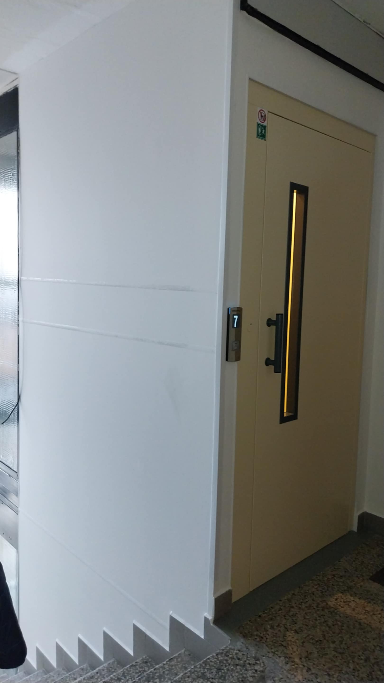 V rámci rekonstrukce jsme demontovali původní technologii výtahu a instalovali nový systém s vyšší nosností a rychlejším provozem. Díky tomu je nyní výtah komfortnější a efektivnější pro každodenní používání obyvateli domu. Součástí modernizace bylo také rozšíření vstupních dveří do kabiny. Nové dveře jsou o 10 cm širší než původní, což výrazně zlepšuje přístupnost a manipulaci například s kočárky či většími předměty.