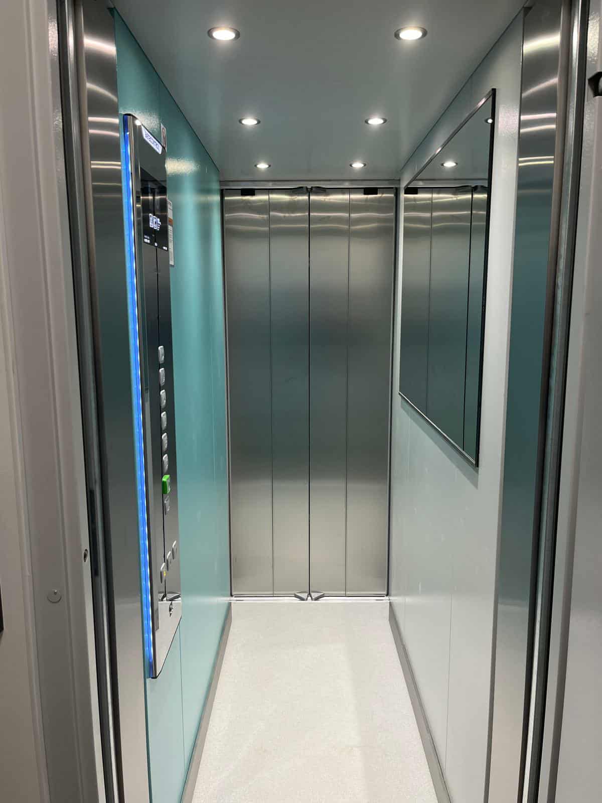 z nově zrekonstruovaných výtahů. Staré výtahy jsme na ulici Mikulčická vyměnili za nové.