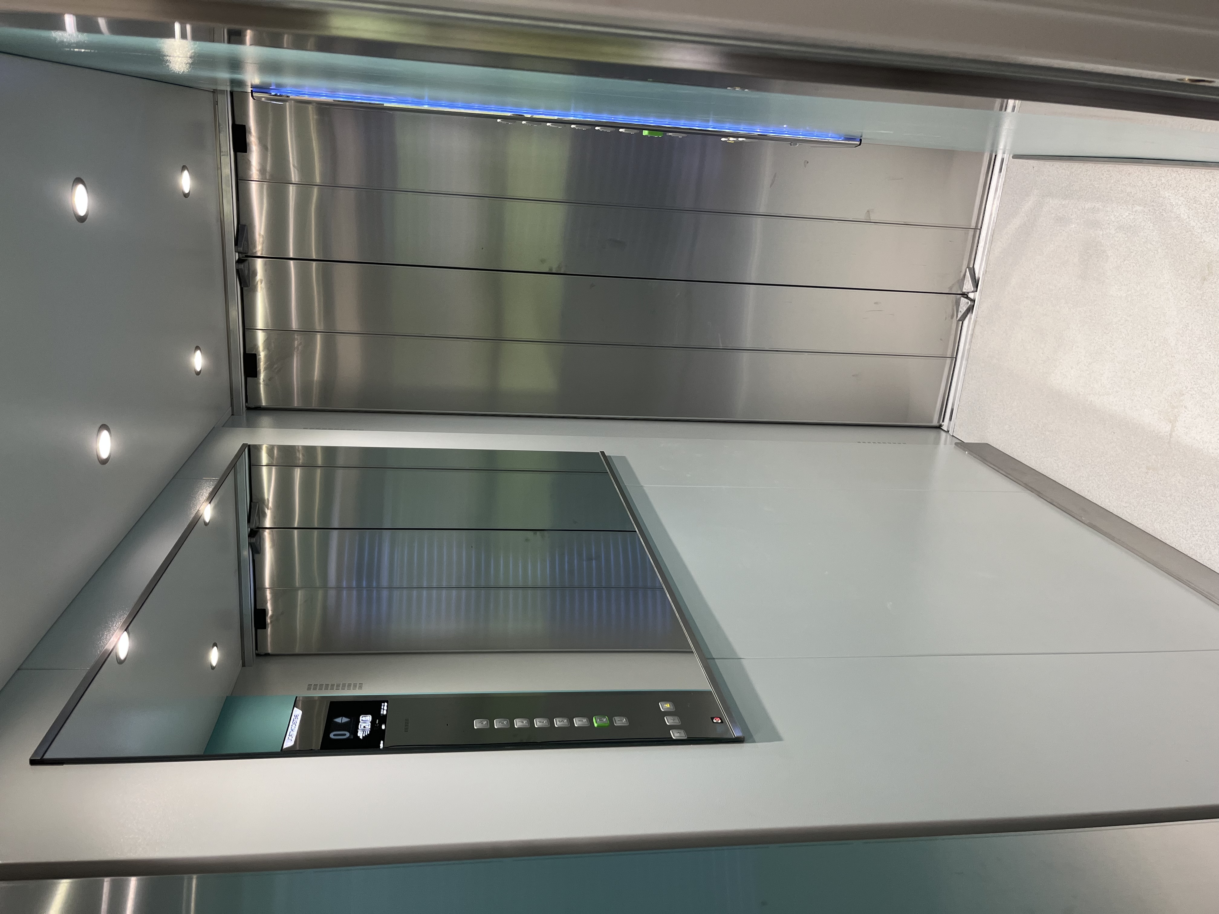 Dveře výtahu jsme použili oboustranné ruční s ohledem na fakt, že do domu se zvenku vstupuje z obou stran budovy. Zajistili jsme tak pohodlné použití výtahu pro obě varianty. Odstranili jsme staré radiátory z veřejných chodeb, které už neplnily původní účel a nepoužívaly se k vytápění. Provedli jsme instalaci nového osvětlení v celém domě. Strojovna zůstala na střeše a přístup do ní je po nově instalovaném žebříku.