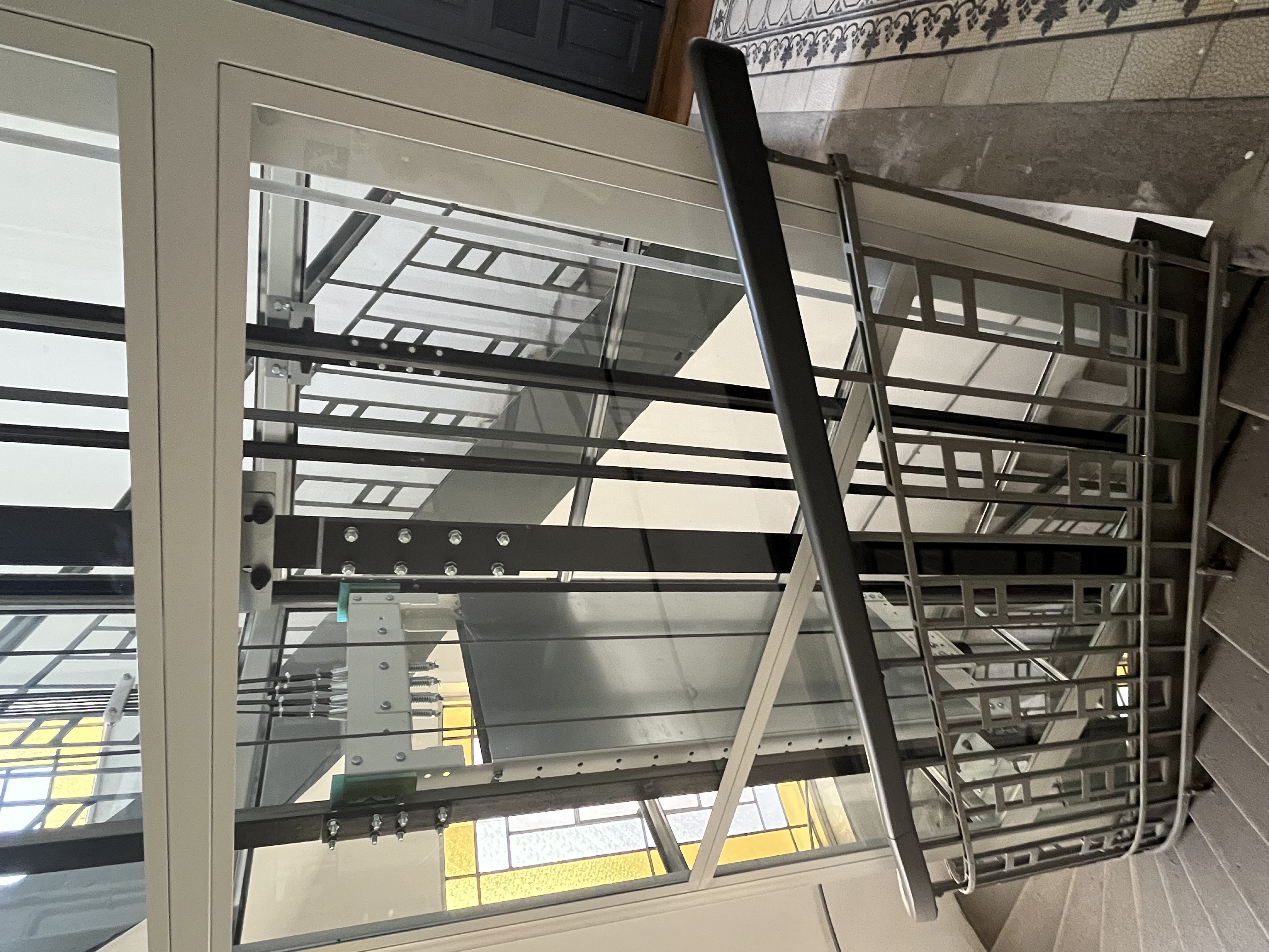 Původní historické zábradlí kolem výtahové šachty jsme zachovali