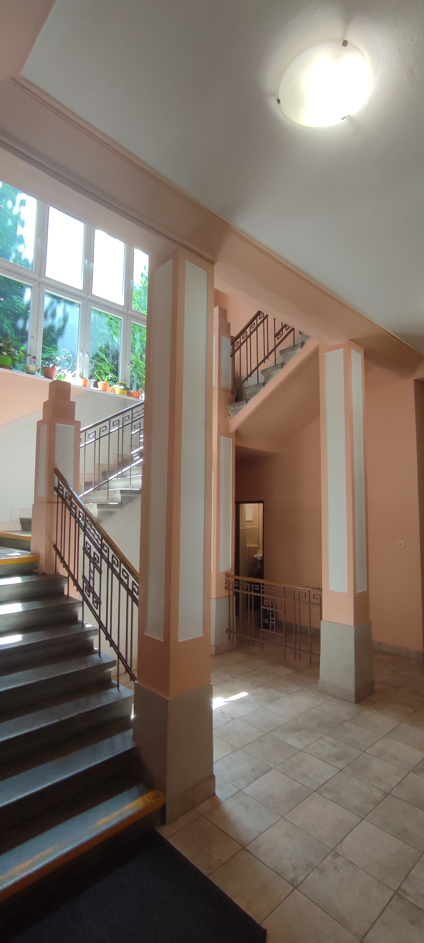 Realizace se neobešla bez náročných technických řešení. Strop nad šachtou je tvořen deskami, které by kotvení ocelové konstrukce neunesly. Bylo proto nutné navrhnout a zrealizovat speciální systém kotvení do bočních stěn schodiště.