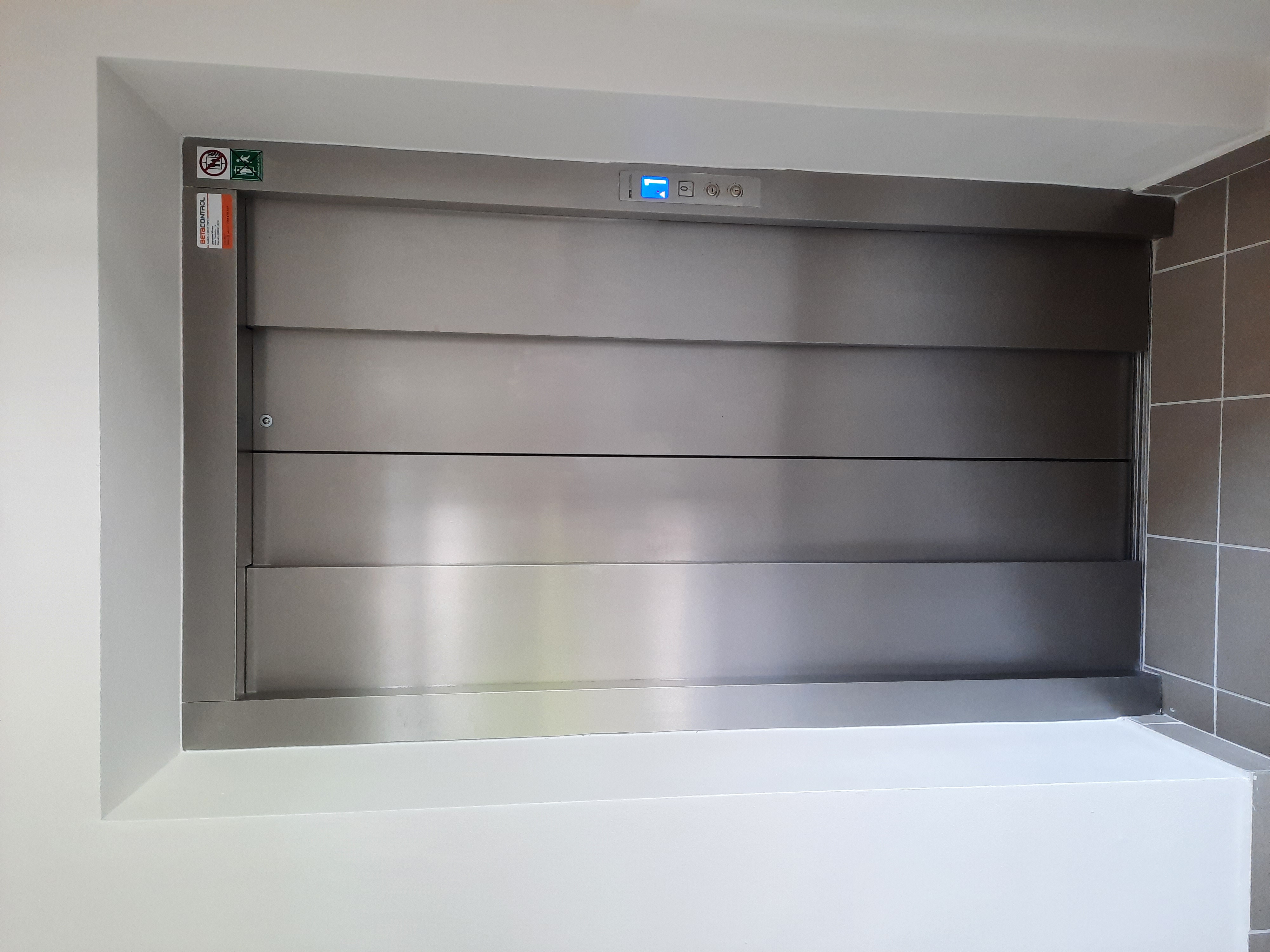 Nově vybudovaný výtah bez strojovny má nosnost 480 kg a sveze se v něm až šest osob. Průchozí kabina s automatickými dveřmi umožňuje obyvatelům domu vstupovat a vystupovat z obou stran. V moderní kabině je navíc kromě ovládacího panelu umístěné také zrcadlo, které celý prostor opticky zvětšuje.